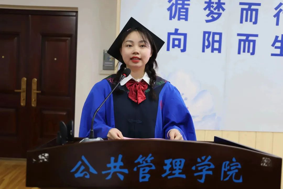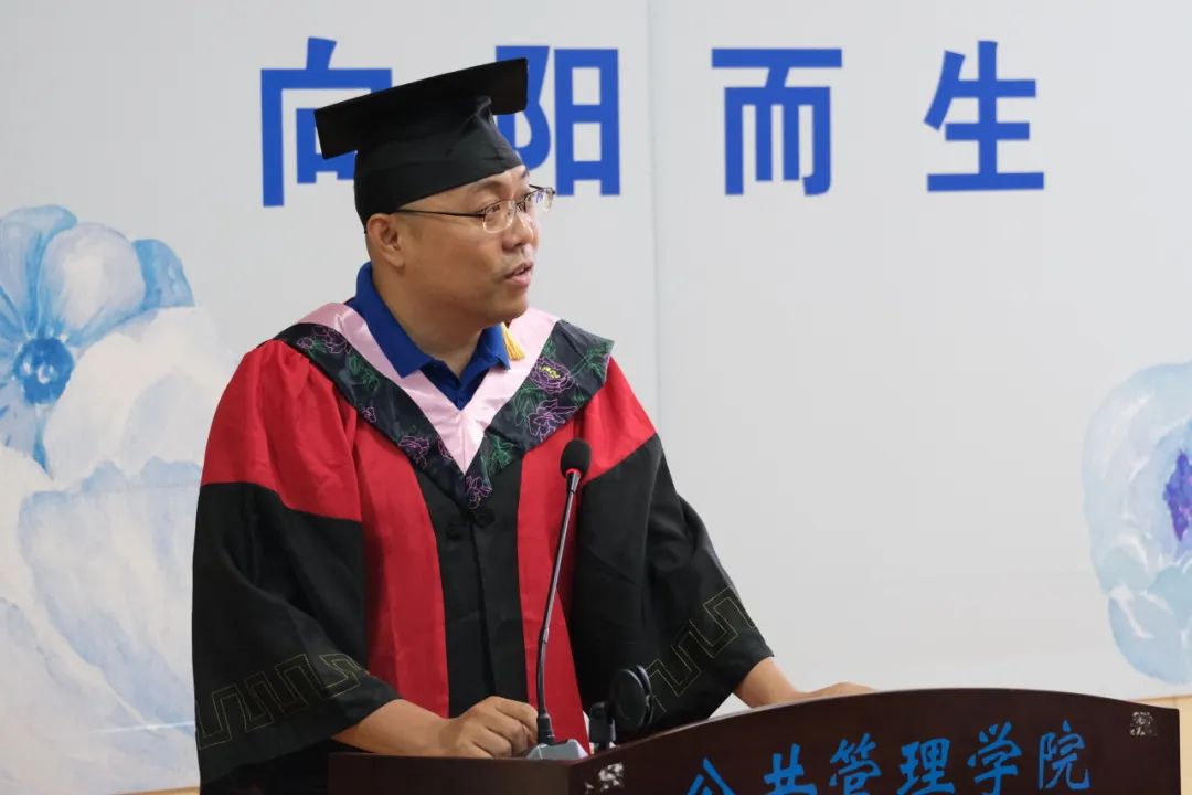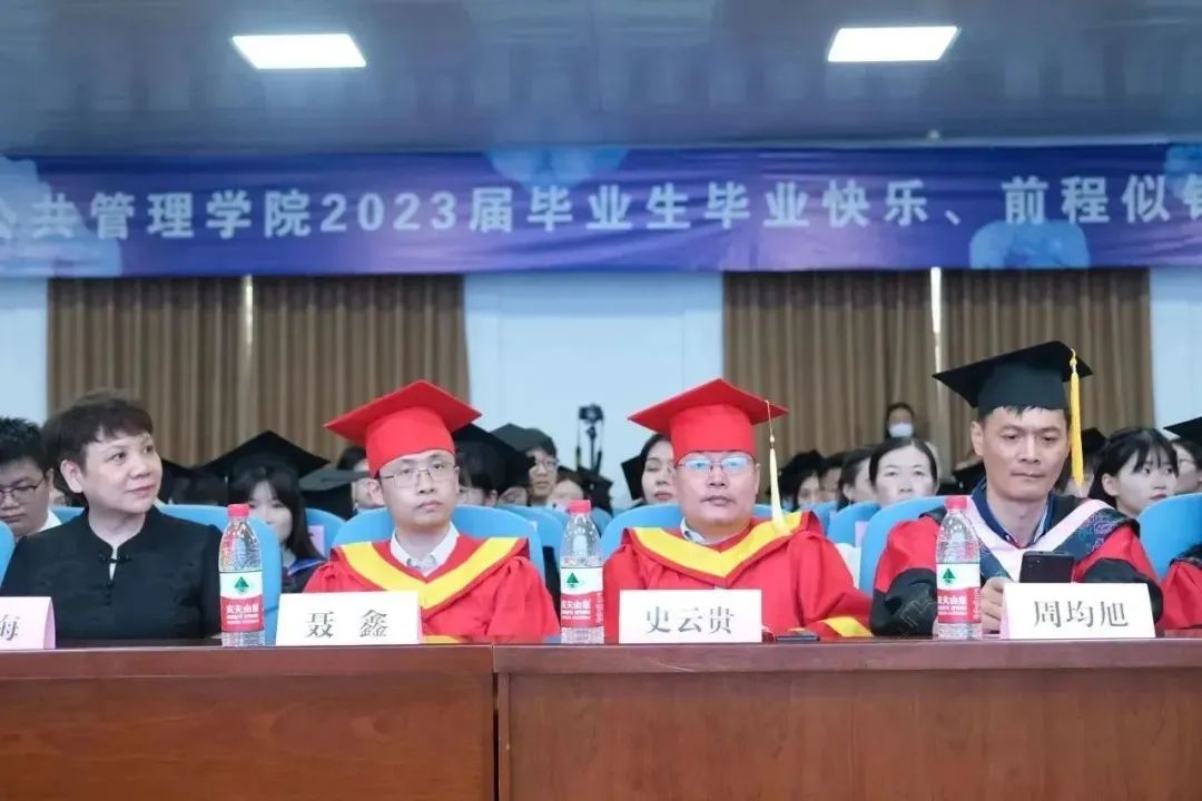 基于高度复杂和高度不确定的时代,史云贵指出开拓可能性远比探求确定性更加重要。临别之际,他给予毕业生们三点期盼,希望大家学会在不确定中,拥抱不确定性,为自己创造可能,并努力把可能变为现实。要拥有梦想,敢于有梦,创造可能。作为公管学子,要心怀梦想,坚守初心使命,胸怀“国之大者”,心系“民之所向”,自觉把个人的理想追求融入国家和民族的事业中,用中国梦激扬青春梦,让绚丽多彩的青春之花在中华大地上绽放。要不断学习,勤于追梦,拥抱可能。养成和坚持终身学习的习惯,不断地提升自己的专业能力和认知水平,持续地去拓展自己的认知边界和思维格局,努力做到与知识更迭同步伐,与时代发展共脉动。梦想从学习开始,让勤奋学习成为青春远航的动力。要持续奋斗,勇于圆梦,实现可能。奋斗出幸福,实干向未来。成功靠的是日夜拼搏,奋斗是成就所有可能的必由之路。“路虽远,行则将至;事虽难,做则必成”,脚踏实地的努力和坚忍不拔的奋斗成就出彩的人生。