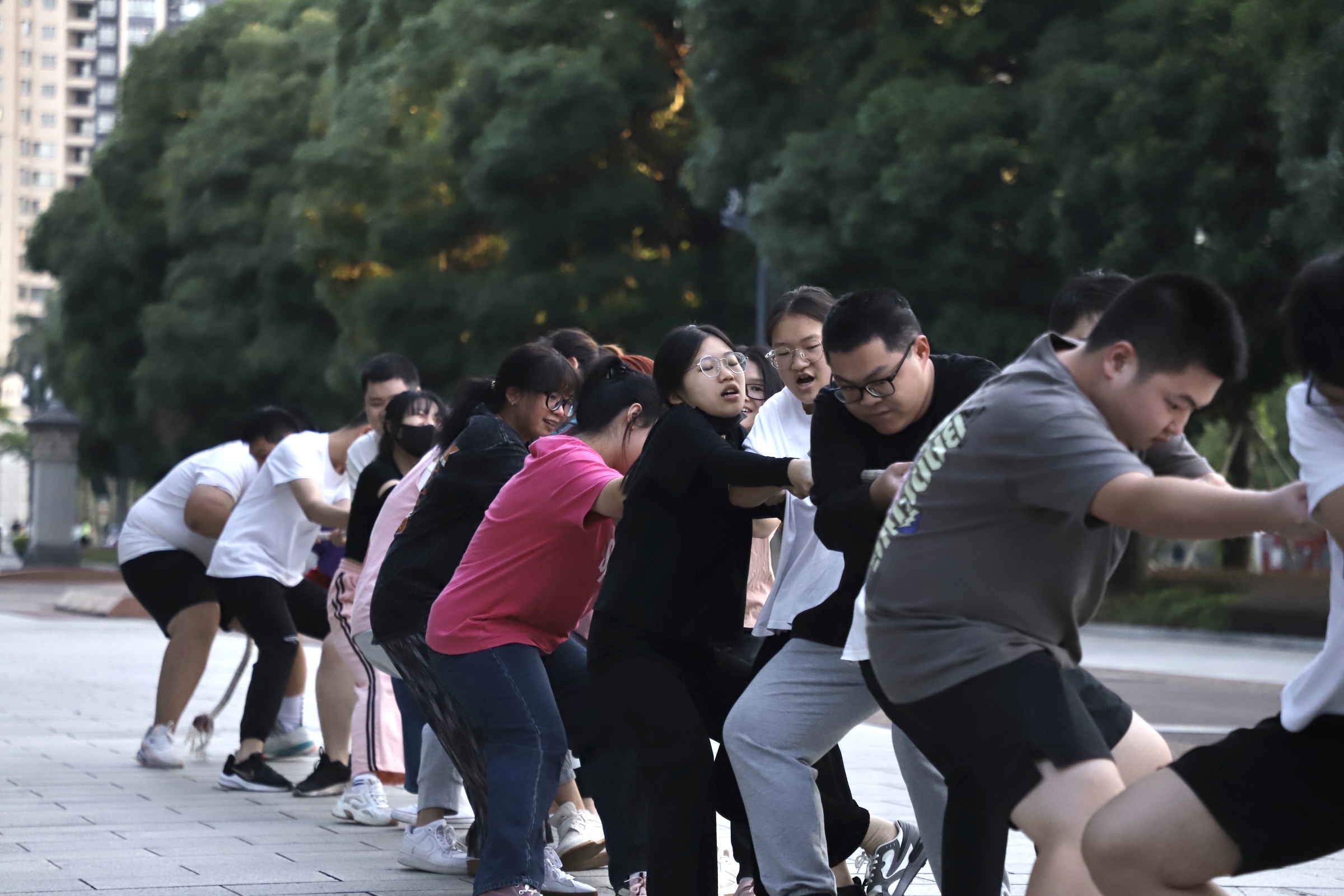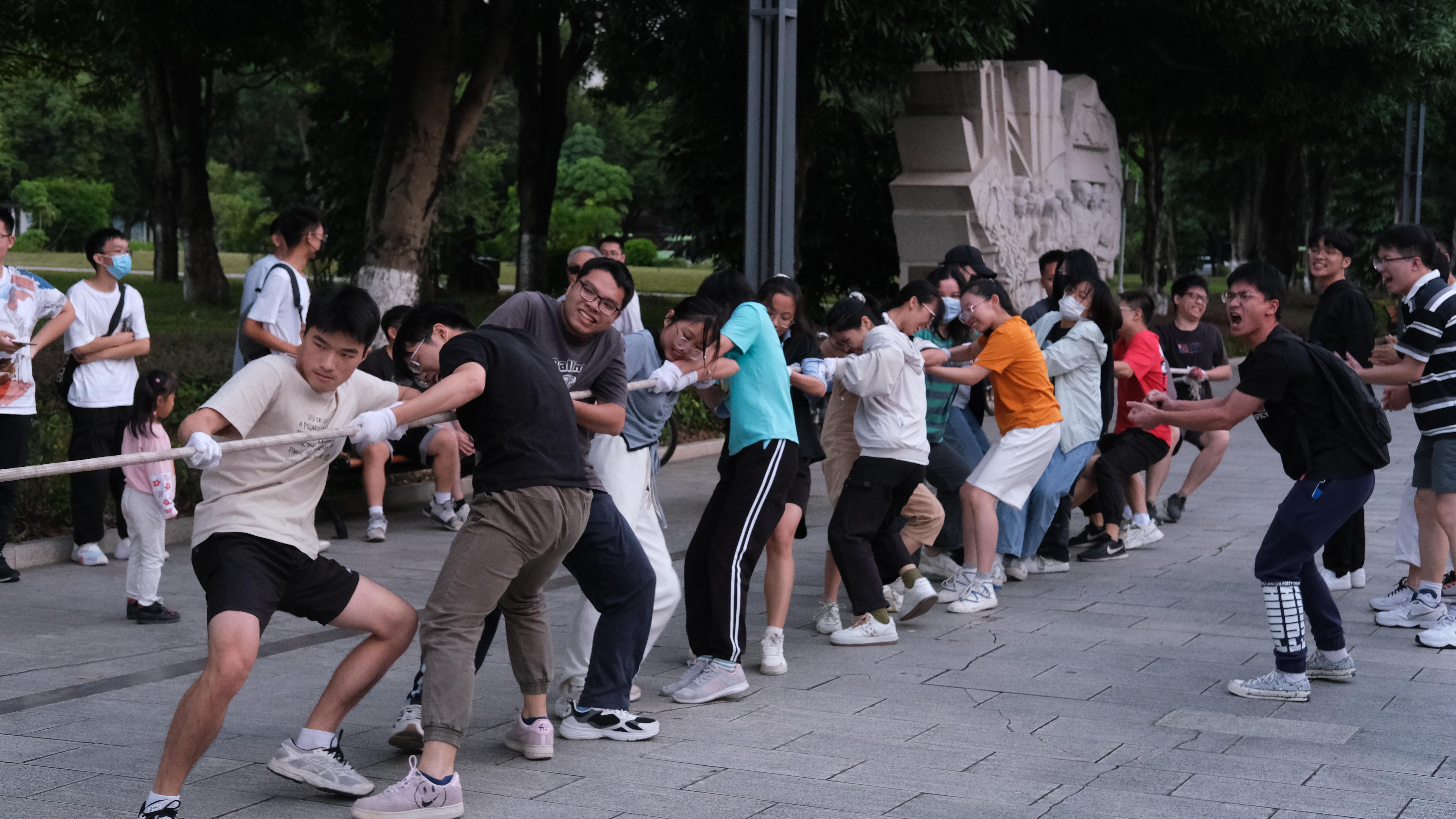 为丰富同学们的体育文化生活,锻炼同学们的体魄,增强大家的团队意识,强化拼搏精神,约啪社区 于10月13日和14日在西综合楼南面举行了第十七届“迎新杯”拔河比赛。约啪社区 本科所有班级、研究生21和22级的班级参与此次活动。