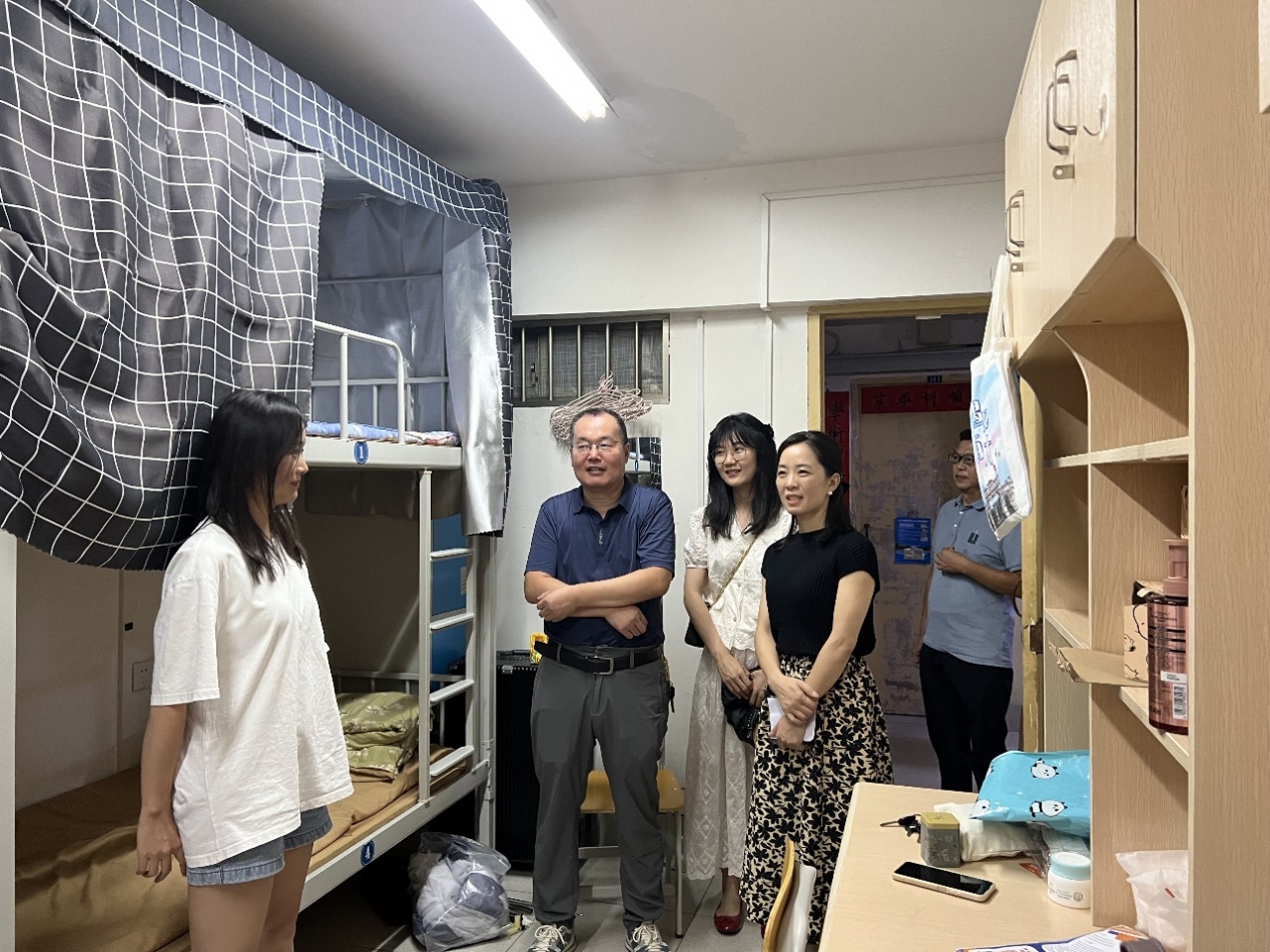 “从哪里来啊?来到约啪社区 还适应吗?室友间是否已经熟悉?”每到一个宿舍,学院领导都悉心询问同学们的住宿与生活情况、家乡籍贯、新学期的安排等,并耐心解答了同学们的疑惑与问题。