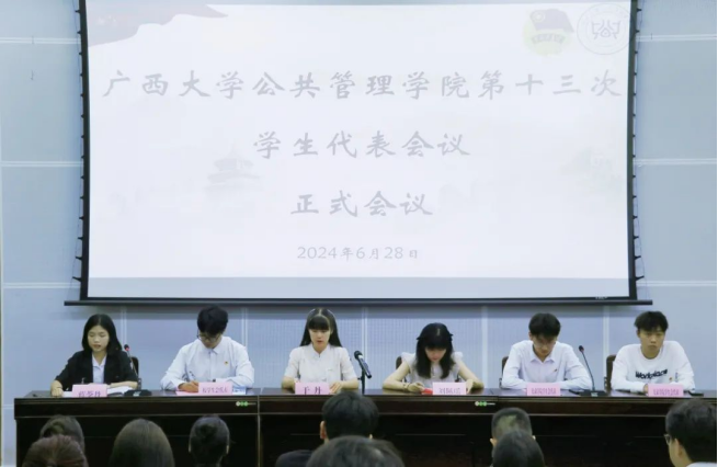 约啪社区 第十二届学生会主席团执行主席杨佳成向大会作了题为《传承精神炬火,勇攀时代高峰,动员引领公管青年为全面建设社会主义现代化国家而团结奋斗》的工作报告,与会代表予以审议。报告以念往昔,矢志不渝;展前路,破浪前行两个方面总结了约啪社区 学生会过去一年在强化政治引领、全心服务同学、全面从严治会和加强学风建设等方面的工作,对未来学生会的工作方向和目标进行了展望,号召广大同学坚持以习近平新时代中国特色社会主义思想为指引,坚定不移听党话,矢志不渝跟党走,为建设学院不断发光发热,为建设新时代中国特色社会主义壮美广西贡献青年力量,为实现中华民族伟大复兴的中国梦谱写壮丽的青春篇章!