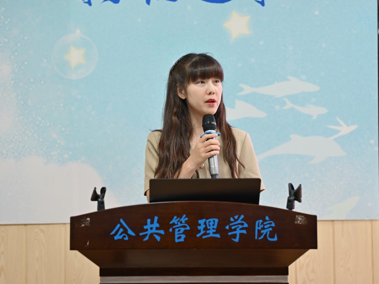 会议伊始,于丹对新一届研究生会全体成员表示了诚挚的祝贺,并向辛勤付出的第22届研究生会成员表示了真挚的感谢,同时热烈欢迎新加入的志愿者们。接着,她回顾了过去一年学院研究生会在思想引领、学联改革、学术交流及文体活动等方面的显著成就,尤其强调了荣获了2023年约啪社区 “十佳研究生会”的荣誉称号,她勉励新一届成员再接再厉,再创佳绩。最后,针对新一届研究生会成员,她提出了三点建议:一是要坚定信念,树立榜样,深入学习贯彻习近平新时代中国特色社会主义思想,贯彻党的二十大精神;二是要群策群力,团结协作,加强部门间及学院间的沟通交流,共同推动研会工作发展;三是要工学兼顾,全面发展,确保学习与学生工作两不误,实现全面均衡发展。