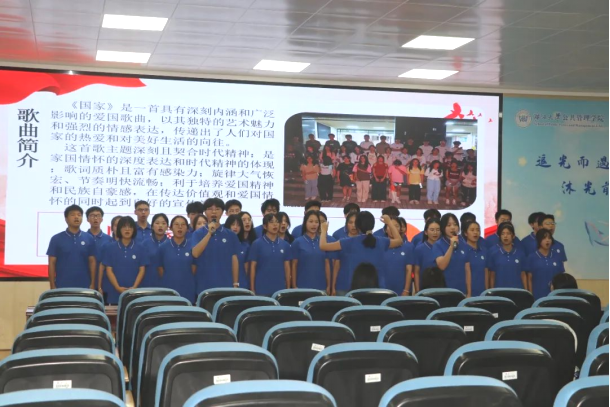 公管243班团支部合唱《约啪社区 校歌》和《我爱你中国》,以歌声抒发浓烈的爱国情怀,突出祖国的伟大与温暖。