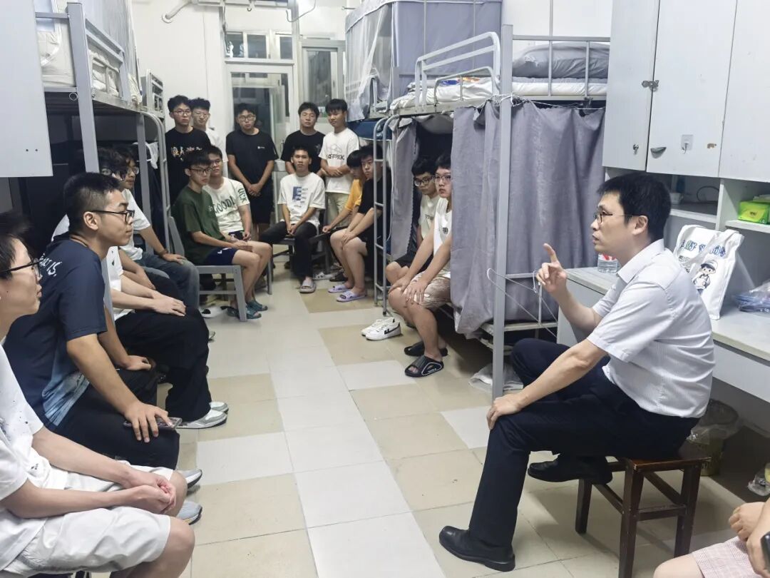 在宿舍里,聂鑫亲切地问候每位新生,表达对他们的关怀。他向新生们分享了人生经历和心得感悟,在欢声笑语中拉近了彼此的距离。他对新生们提出几点期望:一是重视自我规划,提升自控力,在刻苦学习的同时也要加强体育锻炼,适应大学生活的节奏;二是勇于探索和挑战,锻炼解决问题能力,要敢想敢为、善作善成,用创新推动个人和国家的发展;三是树立远大志向,努力寻找自己热爱的事业,在追求梦想和服务人民的过程中,实现个人价值与社会价值的统一。