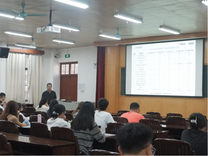 讲座中,宋老师紧扣同学们的核心需求,围绕职位选择、选岗技巧、广西各城市考试难度、定向选调生报考条件等内容展开详细解读,并提供了兼具针对性和实用性的备考指引,切实为同学们筑牢备考基础,提振备考信心。
