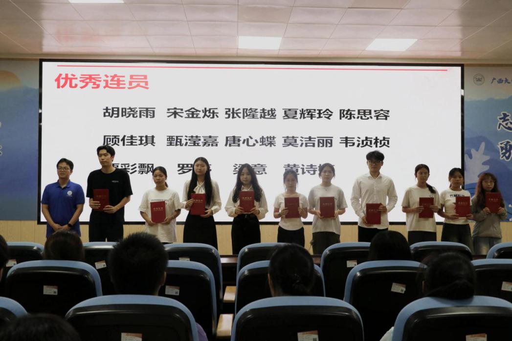 仪式公布了第三十三届共进连优秀连干、优秀连员、结业连员名单,陈科旭为优秀连干、优秀连员颁发荣誉证书并合影留念。