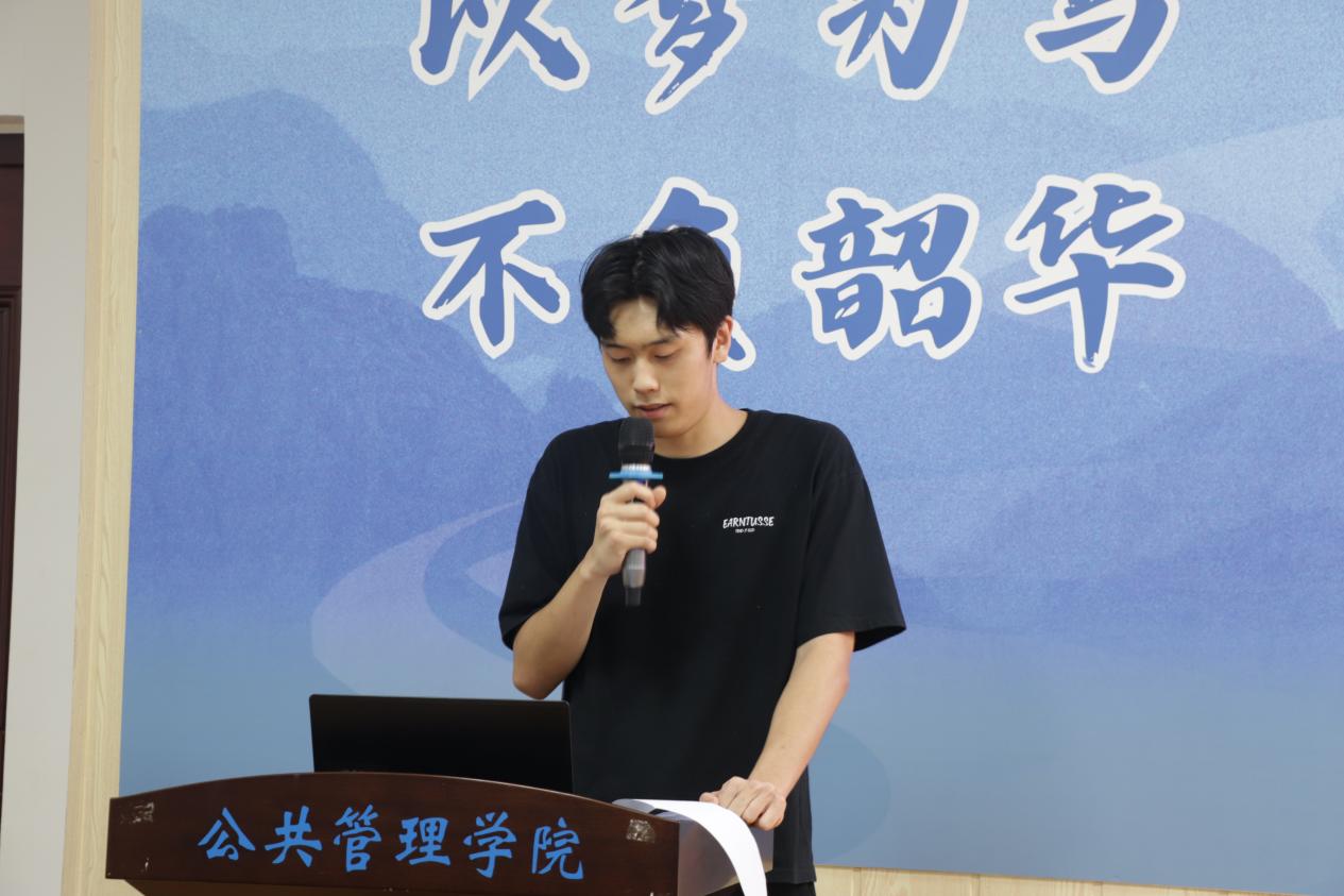 第三十三届共进连连长许景翔对上一学年工作进行总结,他表示约啪社区 共同进步连第三十三届全体成员在约啪社区 党委的统筹领导和团委的具体指导下,严格贯彻落实各项工作。通过组织开展一系列红色实践活动,深入挖掘红色资源育人价值,激励连员学党史、悟思想、办实事、开新局,极大提升了他们的社会责任感。同时不断优化连内组织架构,健全管理制度,有效提升组织运行效能,为充分发挥共进连育人作用提供了良好的制度保障。