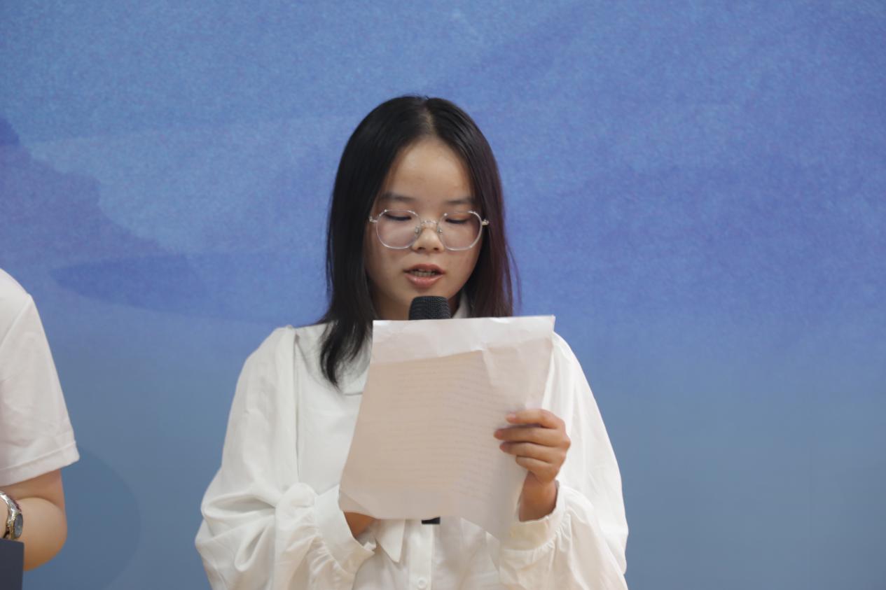 新连员代表唐渝莹分享自己对加入共进连的展望,她希望在党组织的引领下系统学习党的理论,积极参与组织生活,在一次次思想淬炼与实践磨砺中不断坚定入党初心,表达了新一届连员渴望用实际行动唱响“爱国、青春、奋斗”最强音的决心。