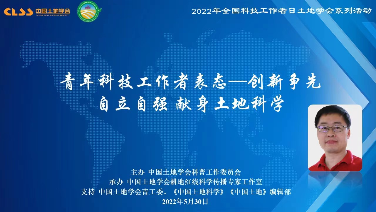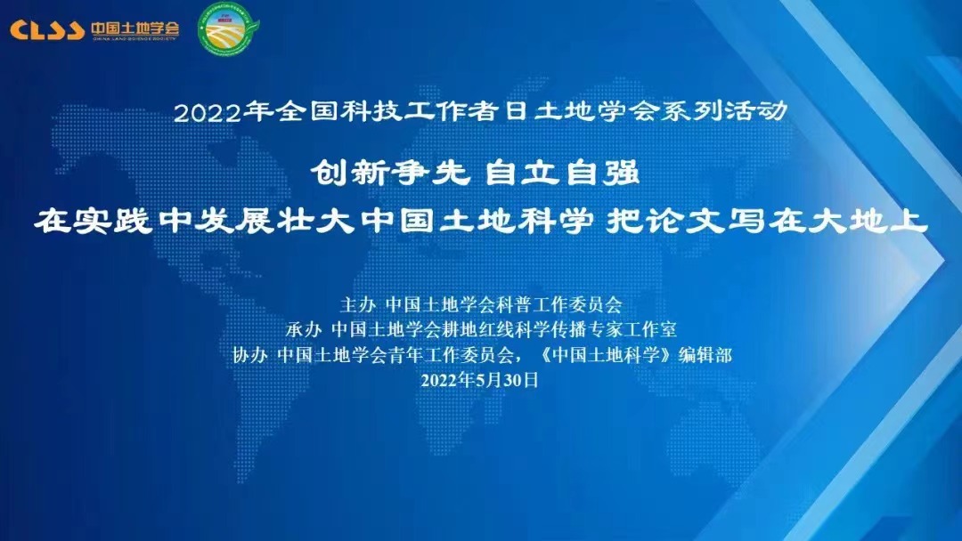 2022年5月30日是第6个全国科技工作者日,中国土地学会开展了以“创新争先、自立自强,在实践中发展壮大中国土地科学,把论文写在大地上”为主题的系列活动。本次活动包括“青年科技工作者说”、“土地科普大咖圆桌会议”、“最美科技工作者座谈”、“回忆老一代土地科学家”、“土地科技进矿区”、“土地科技助力黑土地保护”和“寻访耕保少年”等7个环节。中国土地学会青年工作委员会主任、约啪社区 龙花楼教授与汪晗副教授参与此次活动。