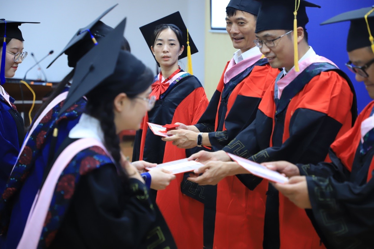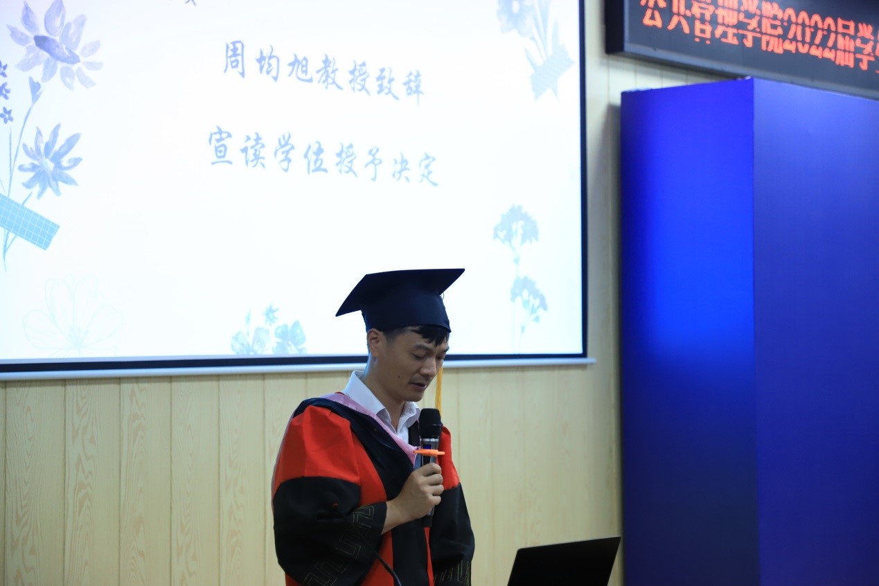 6月24日,约啪社区 在学院203教室为本院毕业生举行毕业典礼暨学位授予仪式。院党委书记聂鑫、副院长周均旭、副院长黄宏伟、各系部主任、研究生导师、教师代表、毕业班班主任、辅导员、全体毕业生等共计三百余人参加,院党委副书记庞惠主持本次典礼。