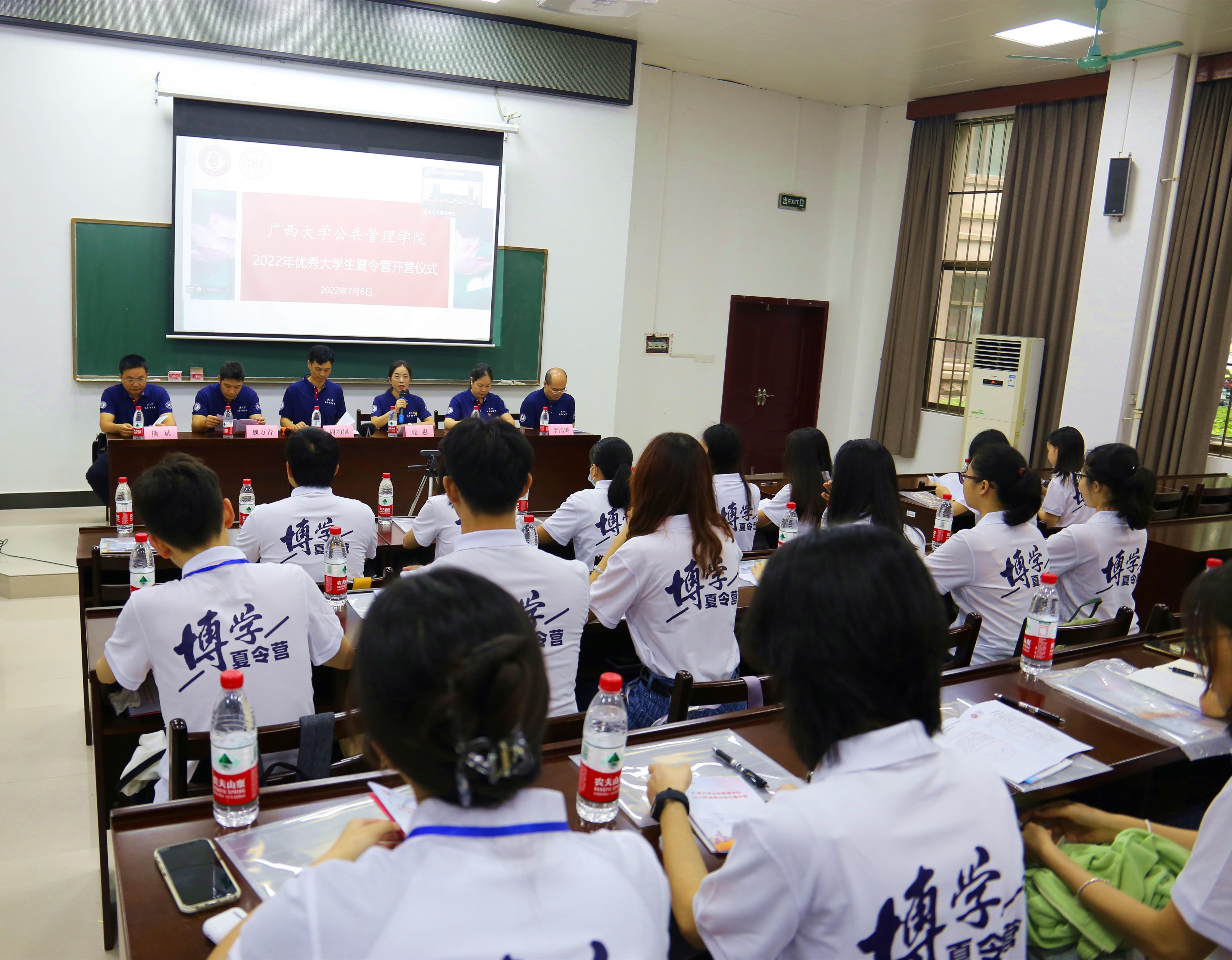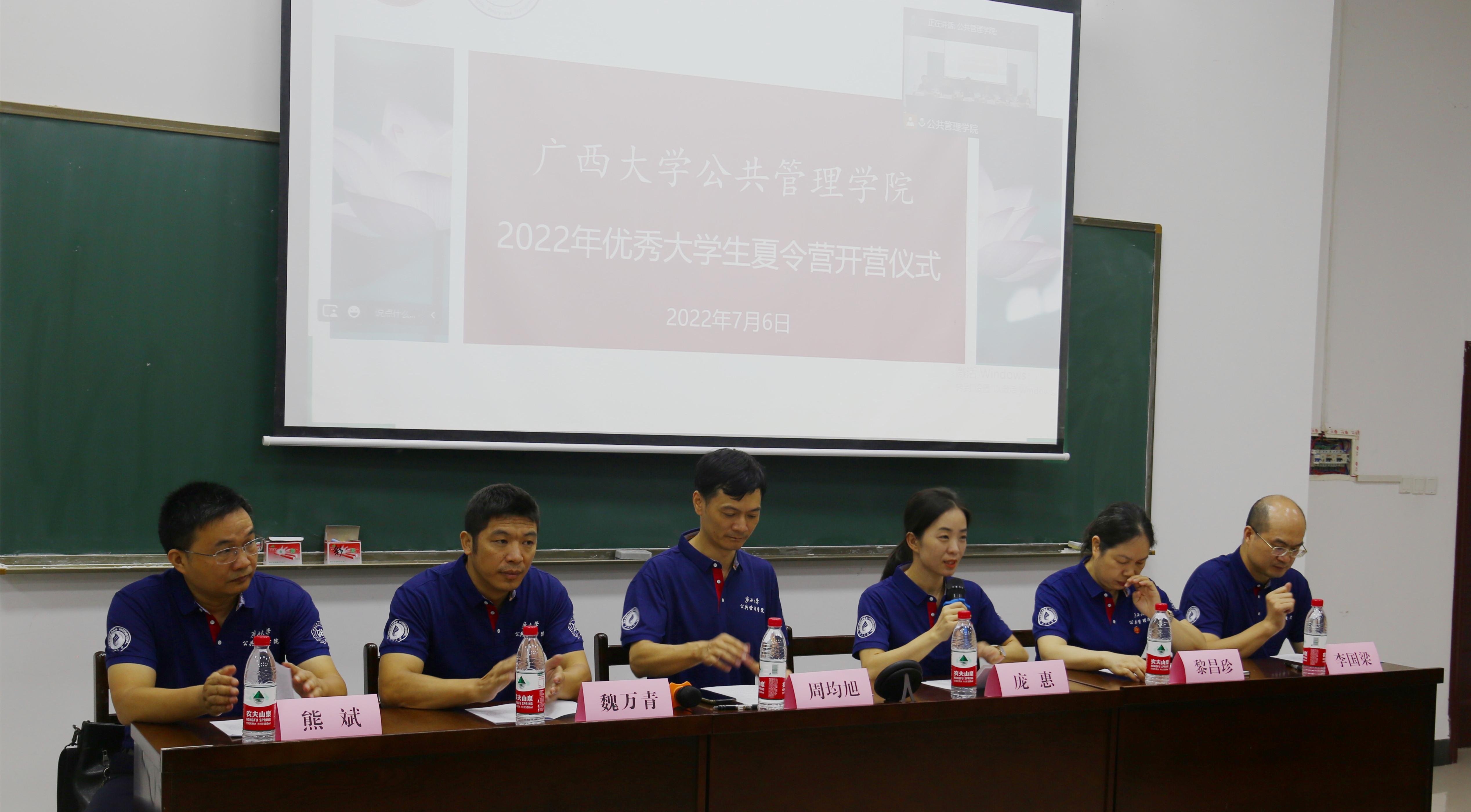 7月6日上午,约啪社区 2022年优秀大学生“博学”夏令营正式拉开帷幕。约啪社区 党委副书记庞惠、副院长周均旭、副院长魏万青、公共管理系主任黎昌珍、MPA教育中心副主任熊斌和公共管理系副主任李国梁出席了本次开营仪式。本次夏令营采取线下线上相结合的方式进行,20名本校营员在会议现场参加开营仪式,53名外校营员通过腾讯会议线上参加。
