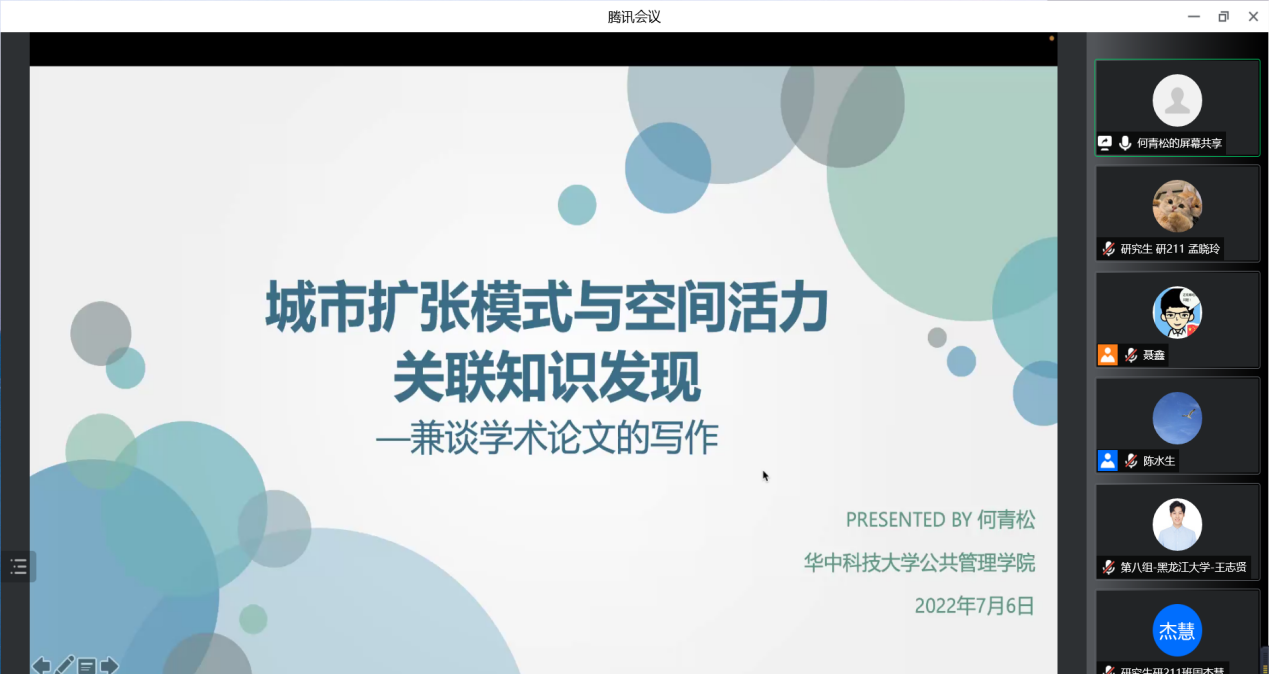 6日,约啪社区 举行了三场学术讲座,讲座以线上会议的形式举行,分别邀请了复旦大学教授陈水生、华中科技大学研究员何青松、浙江大学研究员吴佳雨作主题为《行政管理的学科发展及学习规划建议》、《城市扩张模式与空间活力关联知识发现—兼谈学术论文的写作》、《城市绿色空间治理》的分享,约啪社区 党委书记聂鑫教授主持会议,全体夏令营营员及学院多名老师、研究生参加本次学术讲座。