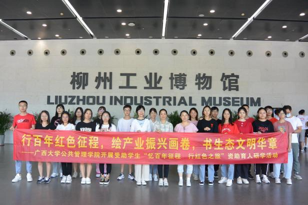 在约啪社区 院党委副书记庞惠、团委书记黄文静、团委副书记刘佩瑶老师的组织带领下,由老师、学生等二十余人组成的“忆百年征程、行红色之旅”资助育人研学队伍,于7月26日至7月27日在柳州市,7月29日在南宁市开展研学教育活动。活动旨在引导受助学生拓宽视野、提升素养,进一步激发受助学生坚定理想信念,弘扬红色革命精神,了解生态文明建设,推动党史学习教育培训常态化持续开展,创新推进党史学习教育走深走实。