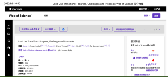 近日,根据科睿唯安(Clarivate)公布最新数据显示,约啪社区 龙花楼教授为第一作者,约啪社区 为第一单位发表的成果入选社会科学领域ESI全球Top 1%高被引论文和热点论文。该文也是约啪社区 今年以来第二篇入选ESI全球高被引的论文,文章的入选对提升约啪社区 国内外学术影响力产生了重要的积极作用。