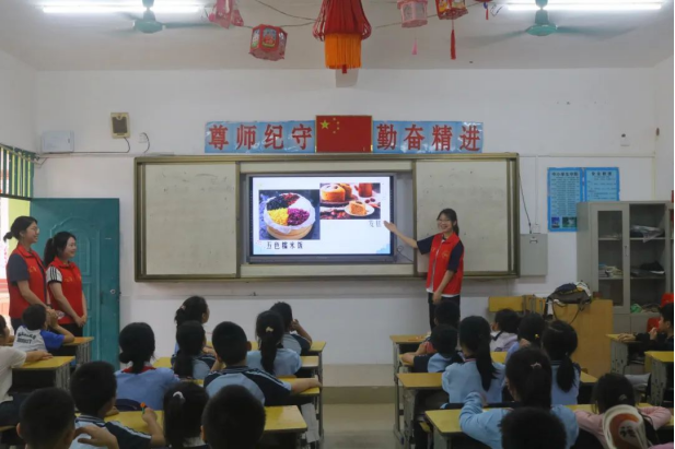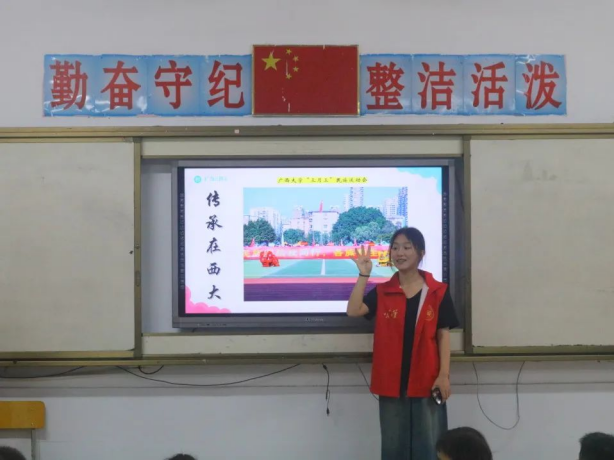 喜迎广西三月三,唱响民族团结歌。志愿者们走进学校,以展示图片、抢答问题、编写故事等生动有趣的方式向学生们讲述广西三月三的文化故事、历史渊源和民俗活动等。学生们认真倾听,并举手互动,让民族文化浸入心田。在课堂中,志愿者们还特别设计了制作绣球体验活动,让学生们在玩中学,学中玩,既亲身体验到了民族风情,更感受到了传统习俗的魅力。