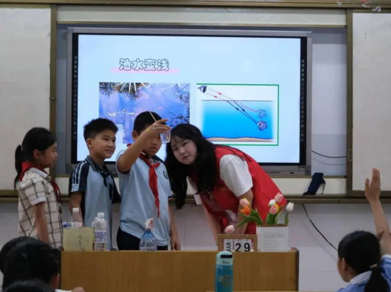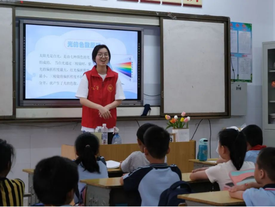 知识之光,色散希望。志愿者们走进小学课堂,为孩子们带来一场名为“光的色散”的奇妙之旅。白色的光线通过三棱镜后变成绚丽彩虹的现象引起了学生们极大的好奇心,志愿者们通过这一有趣的实验,展示了光的色散现象,帮助学生们深入了解光的本质和色彩的奥秘。这次活动,不仅让学生学习到科学知识,更培养他们对科学的兴趣和探索精神。