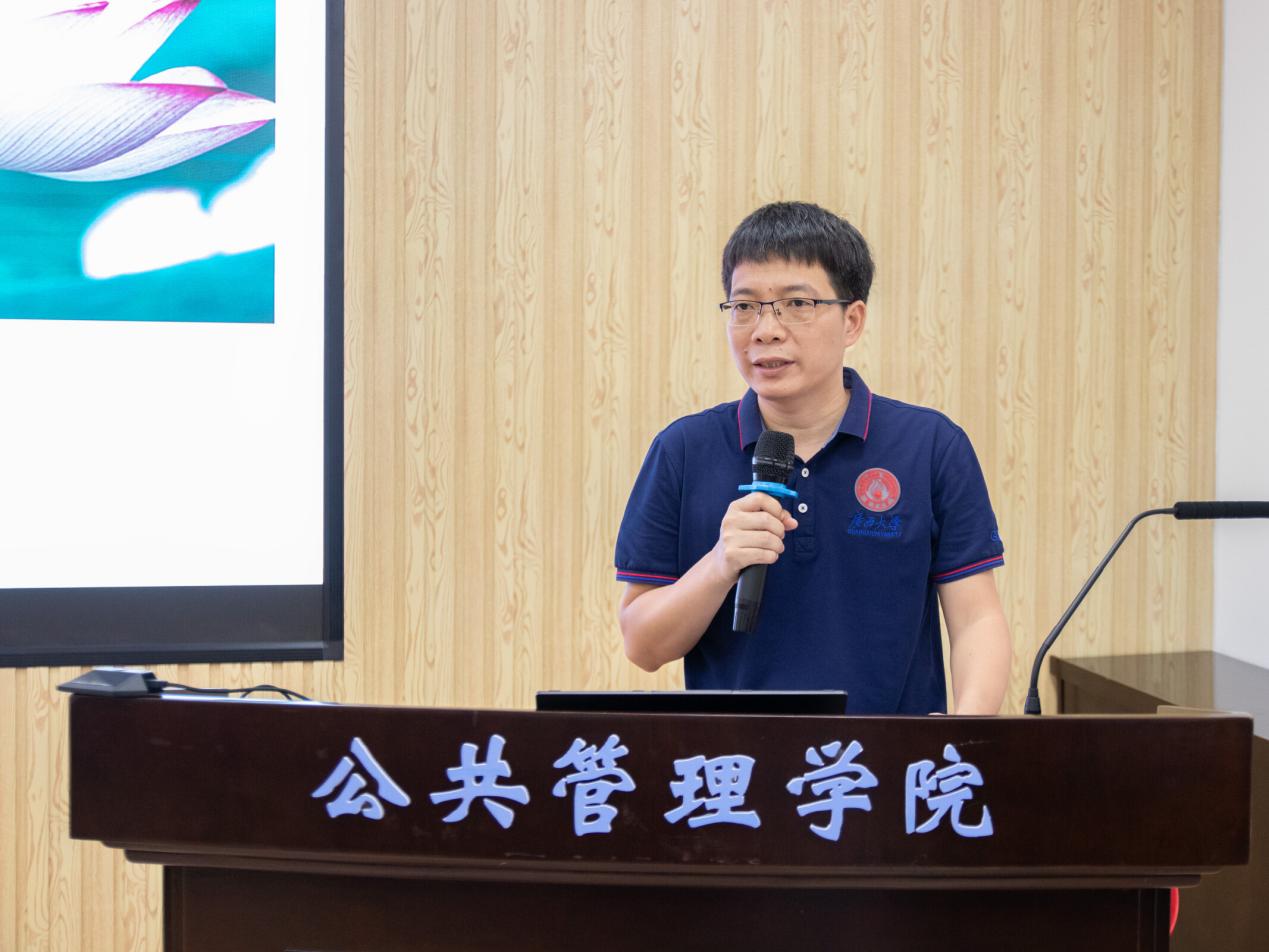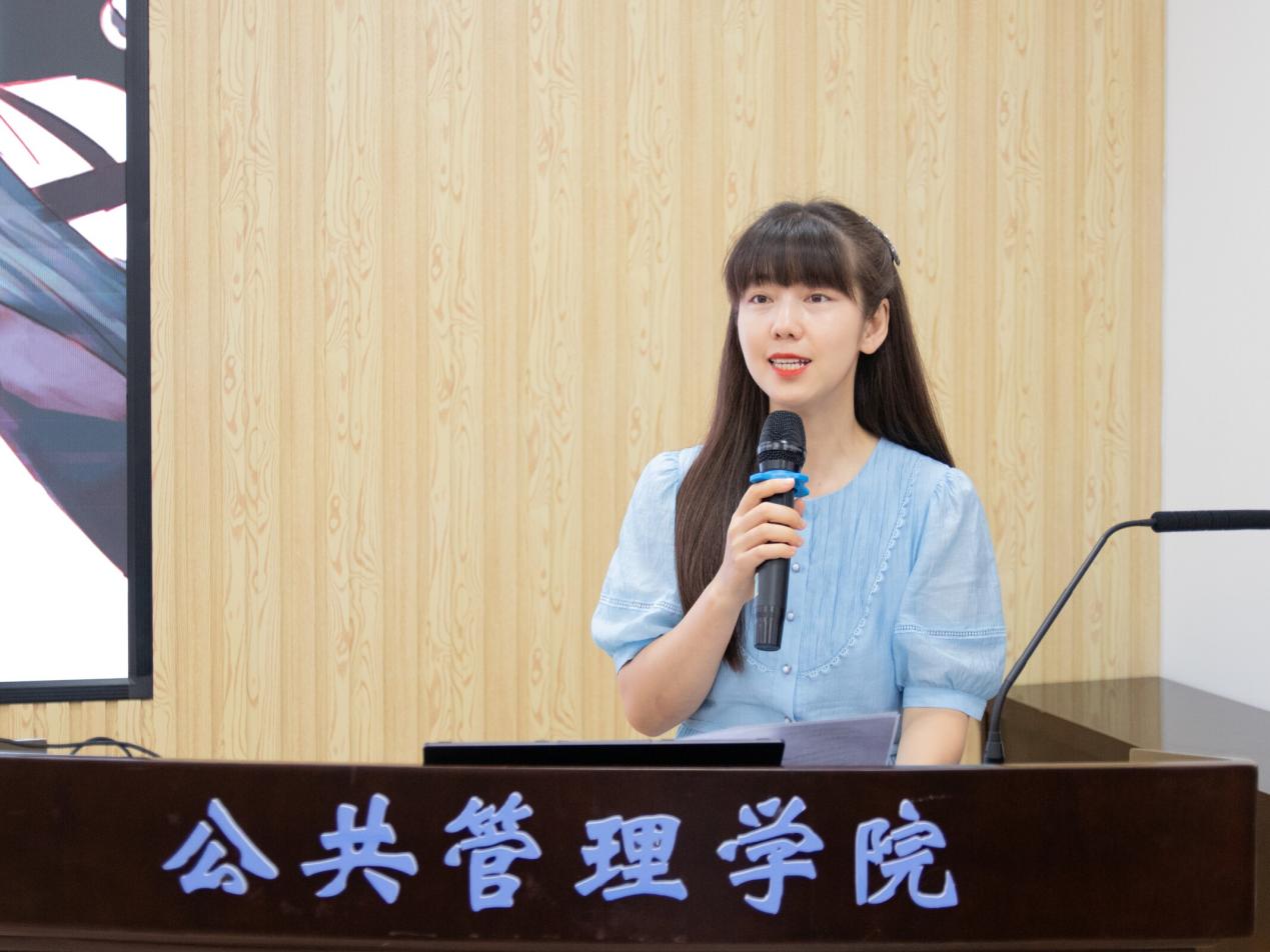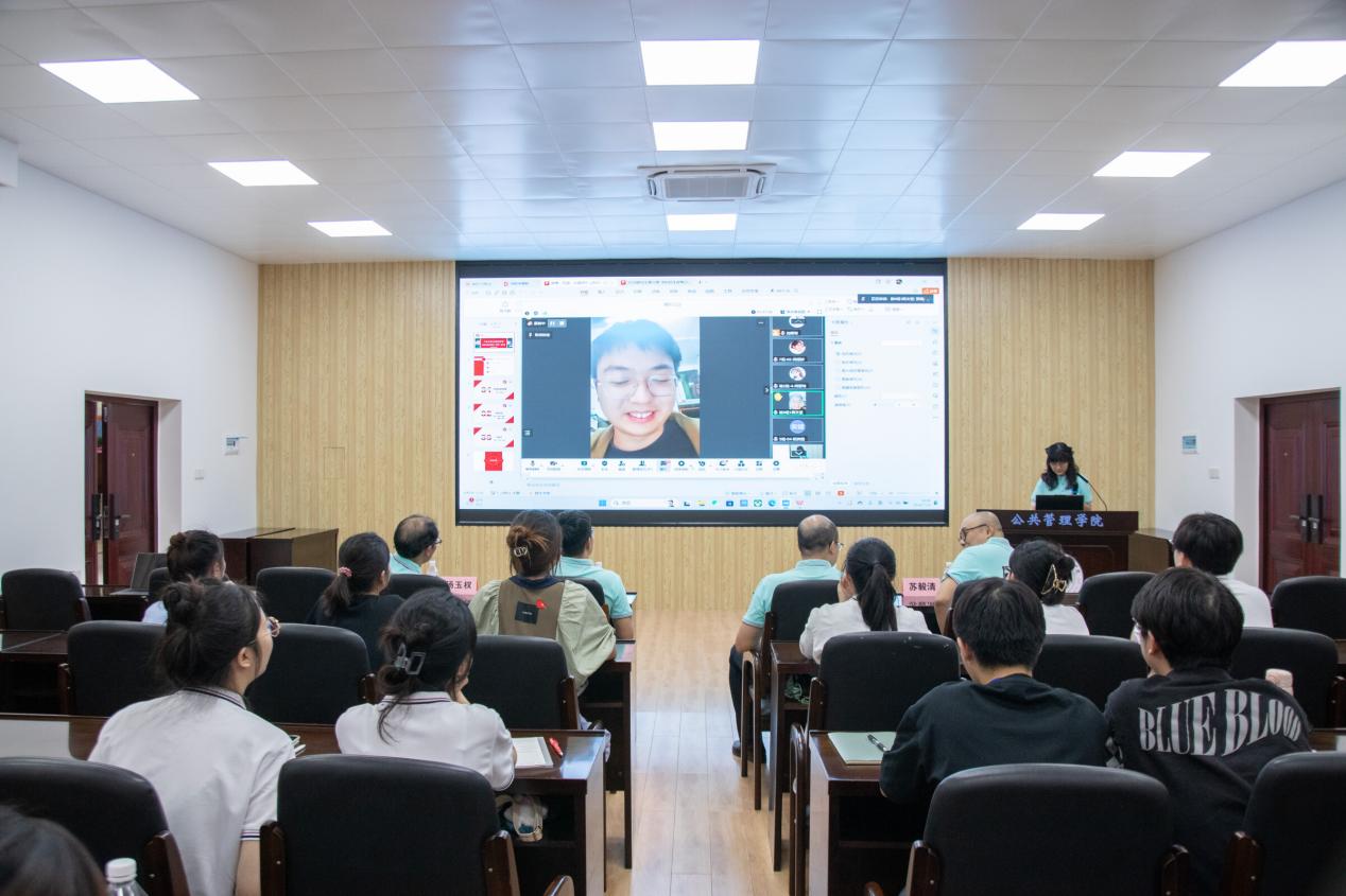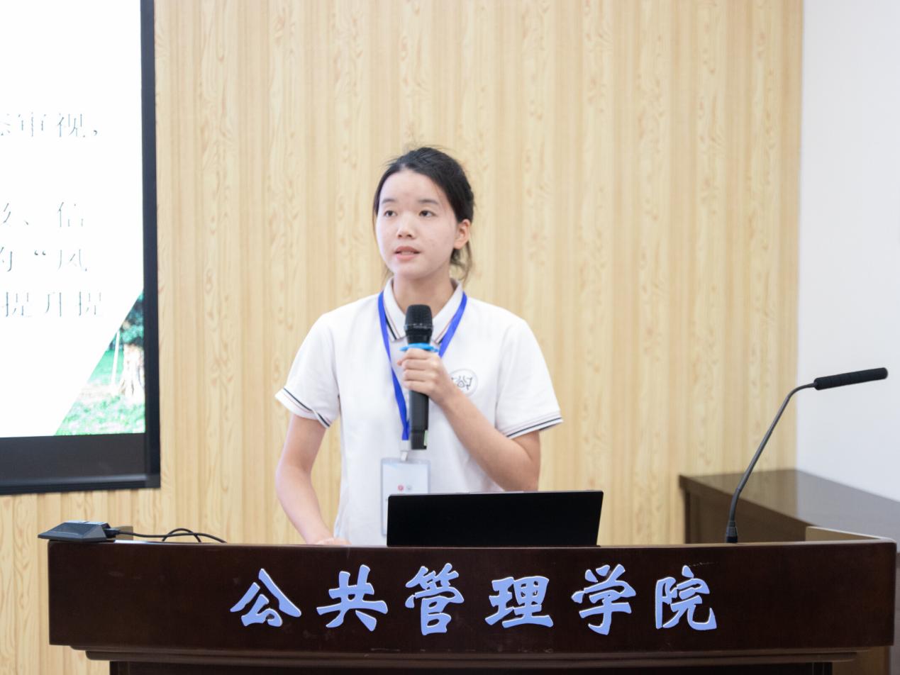 仪式上,覃志敏发表闭营致辞。首先,覃志敏对本次“博学”优秀大学生夏令营活动的成功举办表示热烈祝贺,对积极参与本次夏令营的各大高校优秀学子表示衷心感谢。随后,覃志敏对本次夏令营活动中的营员表现进行了总结:本次夏令营以“博学”为主题,通过线上线下相结合的方式,为营员们提供了丰富的学习体验——线上“云”游校园,感受约啪社区 深厚的学术底蕴和浓郁的人文气息;线下谒见名师,与优秀教师面对面交流,聆听专家学者讲座,拓宽学术视野,并通过无领导小组讨论及学术成果展现了自身的逻辑思维和思辨能力。覃志敏进一步与大家表达了三个期望:第一,他鼓励同学们不仅要深钻细研学科经典专著,构建起扎实的理论框架,更要勇于将所学应用于实践之中;第二,他希望同学们能够继续保持这份开放与包容的心态,与志同道合的伙伴携手并进,在相互学习与支持中共同成长,同时积极关注社会热点问题,以公共管理专业的视角,思考如何更好地服务社会、贡献国家;第三,他强调同学们应该将个人理想融入国家发展大局之中,让青春在为祖国和人民的奋斗中绽放光彩。最后,覃志敏祝愿同学们能够以这次夏令营为新的起点,继续扬帆起航、勇往直前,实现更大的成功。