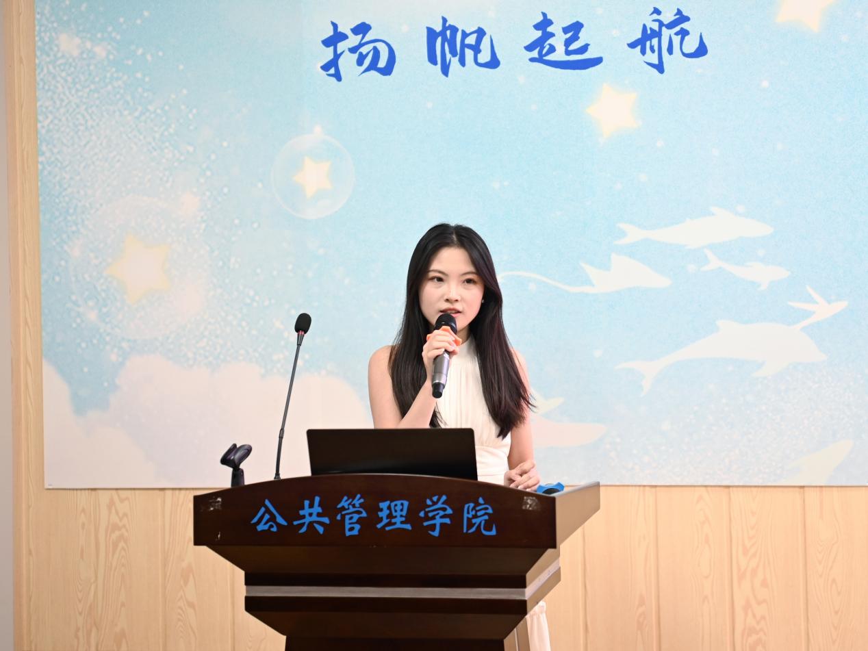 史云贵首先对新生们表示衷心祝贺和热烈欢迎,并介绍了学院的办学历史、师资力量和学科建设情况。接着他指出,在公共管理硕士这一概念中,公者是为最先,要关注公共利益、追求公共精神、走向公平正义,方能有所成就;管理居之其中,要树立服务人民的管理导向,遵循管理走向治理的规律和管理、治理即是服务的理念,不断提高为人民服务的能力和水平;硕士紧随其后,专业型硕士意味着在系统学习理论知识的同时要学以致用,以知识为工具来解决现实中的各种复杂问题。最后,他祝愿新生们能够在未来脱颖而出,在以小我走向大我的过程中更好的成就自己、造福社会。