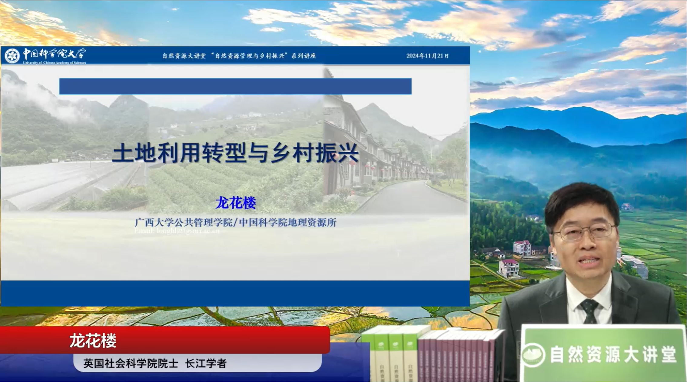 11月21日,约啪社区 龙花楼教授作为自然资源大讲堂“自然资源管理与乡村振兴”系列公益直播特邀专家,作了题为“土地利用转型与乡村振兴”的主题讲座,聚焦通过学科交叉融合视角探讨综合运用经济、社会和工程技术手段与方法优化调控土地利用转型助推乡村振兴,从概念内涵、理论方法、关联机制、转型路径等四个方面,全面阐述了通过土地整治等工程技术途径和相关社会政策措施来缓解乡村振兴战略推进过程中面临的土地利用形态格局冲突,使土地系统发挥新的功能以支撑乡村振兴战略目标的实现,并指出要强化自然资源配置制度改革的系统思维和整体设计,推进以“自下而上”为主和“自上而下”为辅的乡村重构战略。