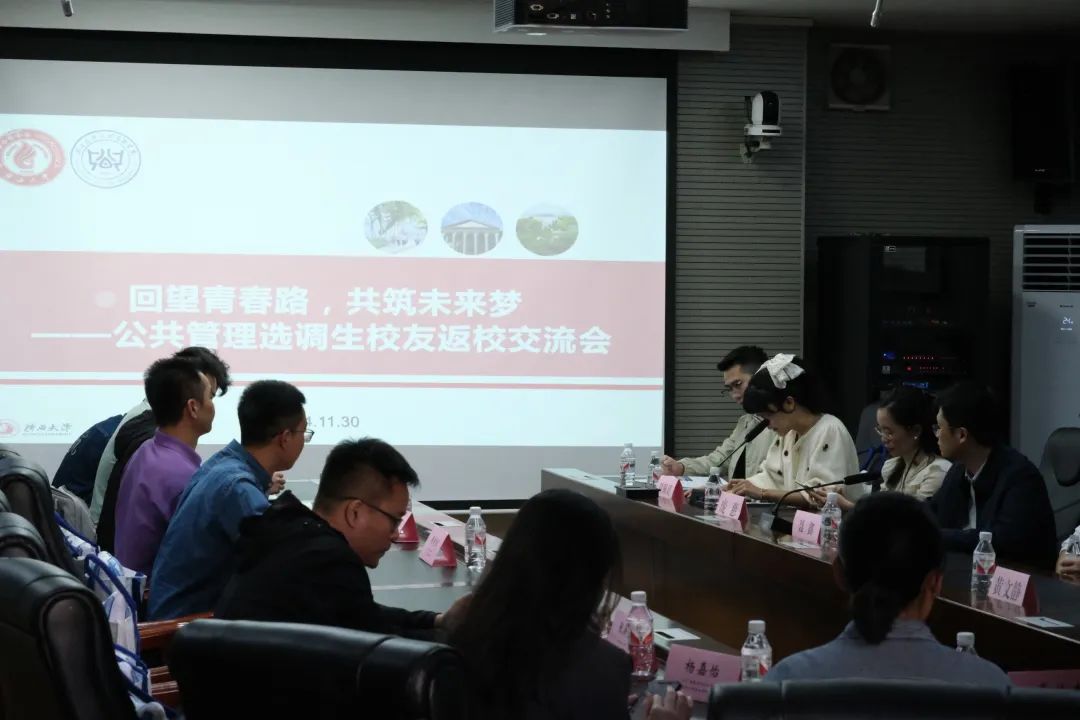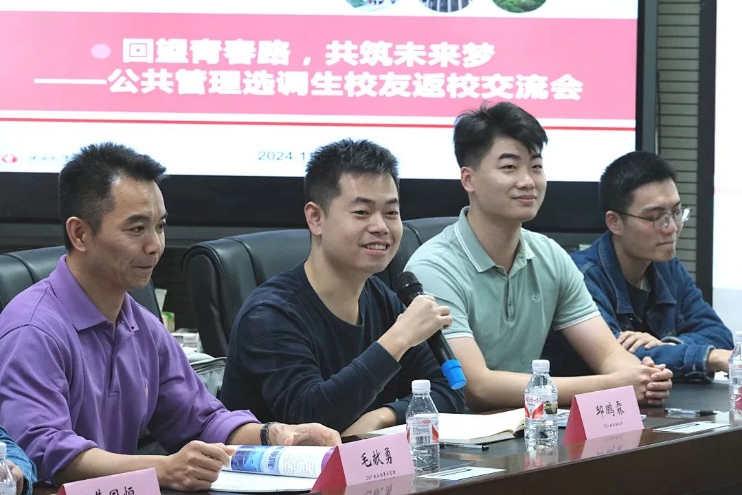 座谈会上,约啪社区 选调生校友依次发言介绍基本情况,回忆学生时代,分享个人选调生经历,在沟通交流中加强情感联结,极大增进了对学院的归属感与认同感。