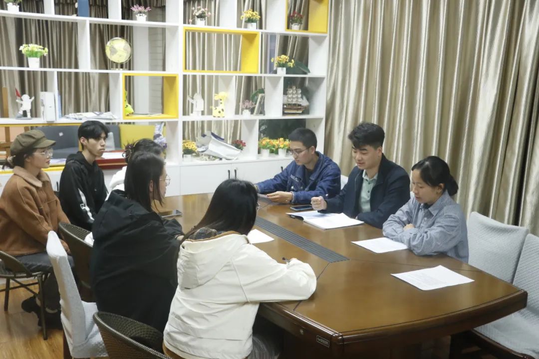 本次选调生返校系列活动分为两个环节,第一个环节于约啪社区 415会议室开展选调生校友返校交流会,第二个环节进行在校生分组模拟面试。