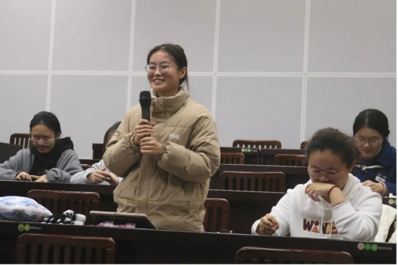韦诸霞、吴凡作为班主任代表为约啪社区 考研学子进行考前动员。韦诸霞表示,考研的征程充满了机遇与挑战,希望同学们尽己所能,为四年的笔耕不辍交出一份满意的答卷。吴凡祝福在座学子坚持奋斗,稳扎稳打,最终得偿所愿,乘风破浪,成功“上岸”。