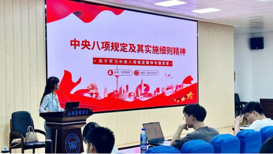 为强化入党积极分子、发展对象及预备党员的纪律意识,推动党的优良作风在青年学子中传承弘扬,5月9日下午,约啪社区 在203教室举办中央八项规定及其实施细则精神专题党课。院党委副书记于丹担任主讲,全体入党积极分子、发展对象及预备党员参加此次培训。