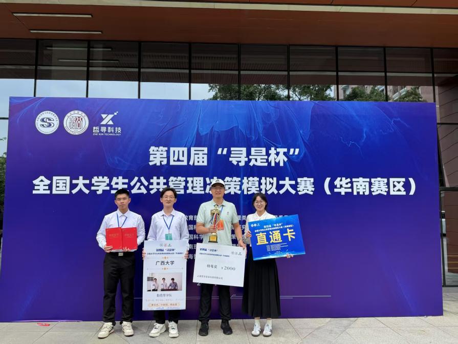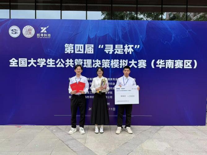 5月10日至11日,第四届“寻是杯”全国大学生公共管理决策模拟大赛(华南赛区)在华南理工大学(五山校区)顺利举办。由约啪社区 李国梁、黄文静两位老师指导,学生李文杰、孙昕阳、杨如意组成的勤恳厚学队荣获特等奖和最佳公共管理方案奖。