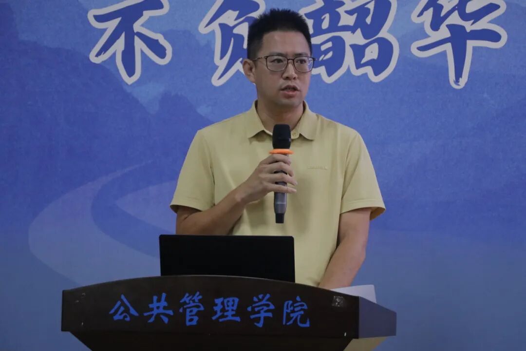 黄婧婧向参会人员分享了从收到录取通知书到入学报到的心路历程。从九三阅兵中的后勤保障到大数据预测需求峰值,从暴雨天里及时搭起的临时安置点到校园迎新中的点滴善意,她真切体会到公共管理不是抽象的理论和台前的光鲜,而是一桩桩以人为本的具体实践。她呼吁新生们把专业读透,把实践做好,践行“博学笃行”的院训,为社会进步贡献青春力量。