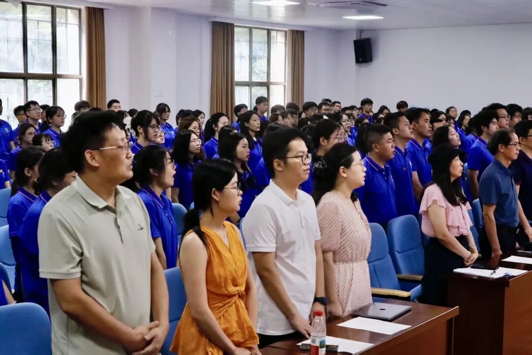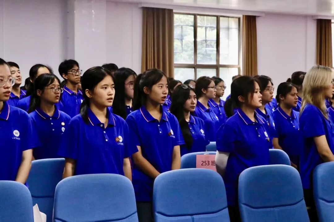 9月19日上午,伴随着庄严的国歌声,约啪社区 2025级新生开学典礼在学院203教室拉开帷幕。院党委书记聂鑫,副院长曾凡军、周均旭、覃志敏、陈林出席典礼,教师代表,学工组辅导员以及全体2025级新生参加本次典礼,院党委副书记于丹主持典礼。