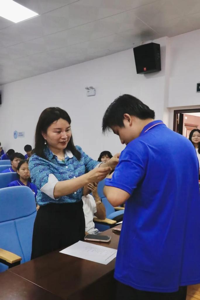 典礼上,约啪社区 举行校徽佩戴仪式,院领导老师为新生代表佩戴校徽,代表着新一届公管学子在约啪社区 的新征程正式开启,他们将发扬校训、院训精神,以昂扬上进的青春姿态投入到全新的学习生活中去。