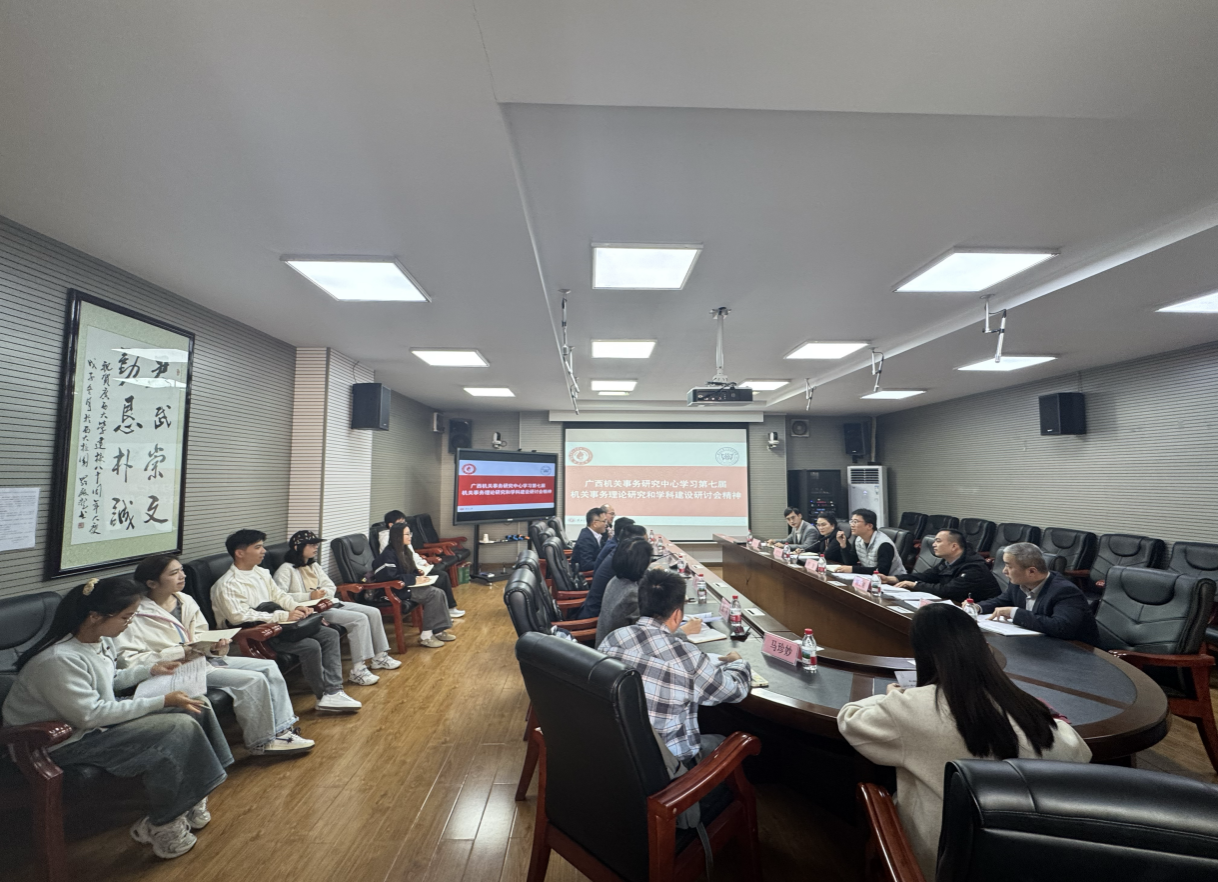 2025年11月24日,广西机关事务研究中心在约啪社区 召开会议,学习第七届机关事务理论研究和学科建设研讨会精神。自治区机关事务管理局政策法规处、办公室、约啪社区 等广西机关事务研究中心相关同志参加会议。