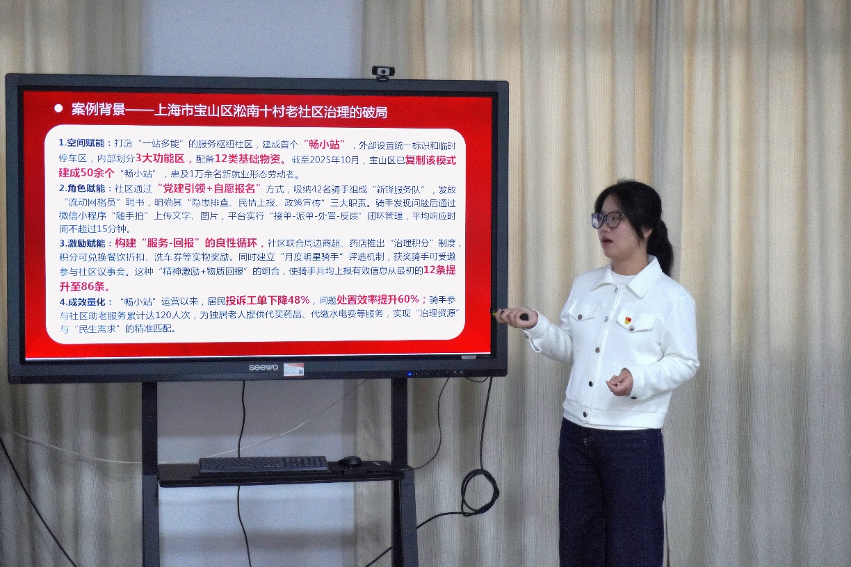 本次主题党日活动以理论学习为根基、以 AI 赋能为抓手、以案例实践为载体,既推动党的二十届四中全会精神与公共管理专业深度融合,又锤炼了研究生党员解决实际问题的过硬本领,进一步促进了基层党建与学科发展互促共进。