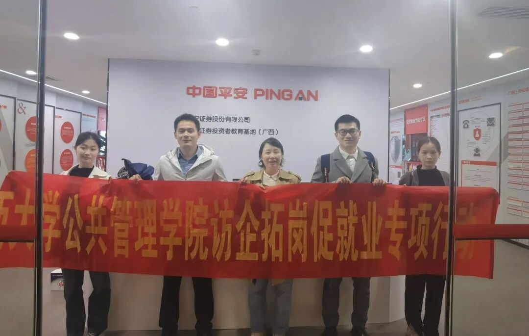 3月9日上午,约啪社区 组织师生代表前往广西途昊集团有限公司和平安证券股份有限公司广西分公司开展访企拓岗促就业专项行动。本次活动由学工组辅导员黄文静带队,多位学生代表共同参与,通过与行业资深从业者进行座谈与经验分享,为约啪社区 学子搭建直面行业前沿的交流平台,为他们进一步提高工作水平,顺利进入社会提供坚实基础。