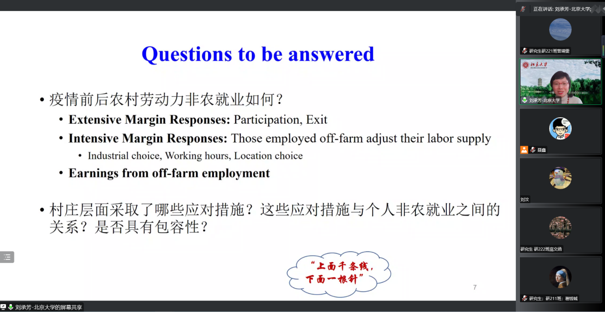师生带来了题为“Coping with the COVID-19 off-farm employment shock: The extensive and intensive margin responses”的主题讲座,约啪社区