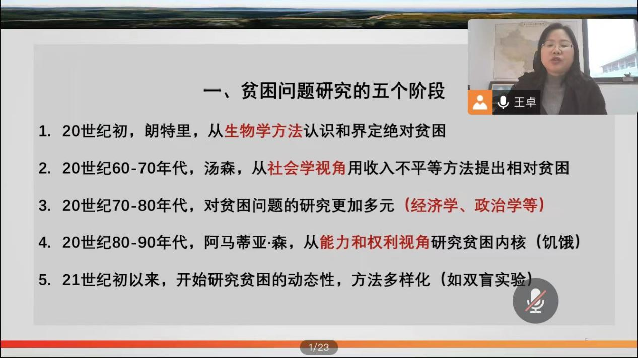 图二 王卓教授介绍贫困问题研究的五阶段