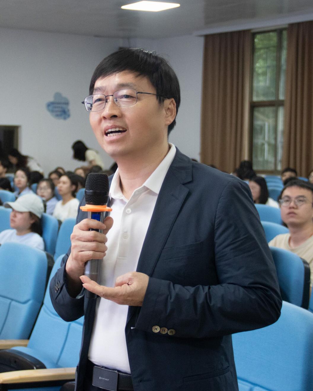 在交流互动环节,龙花楼教授谈到应注重学科交叉,利用AI技术推动研究范式转型,以满足社会需求,并就AI技术在数字经济方面的运用与陈教授展开了讨论。约啪社区 21级硕士生杨紫馨就AI技术在公共管理中的应用提出了自己的疑问,陈教授进行了详细解答,并再次强调,“AI+公共治理”的总方向应是人机协同与人机融合。至此,讲座在热烈的氛围中圆满结束。