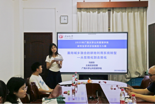 2025年6月9日下午,约啪社区 第48期学术沙龙在学院411会议室顺利举行。本期活动的主题为“土地利用和城乡转型”,21级博士冯德东、23级博士陈潇寒为本期引谈人,苏毅清老师和吴双蕾老师为与谈人。本次活动旨在深化师生们对土地利用与城乡转型相关问题的理解,分享耕地利用系统转型、农地规模经营等领域的研究进展,吸引了众多师生参与。