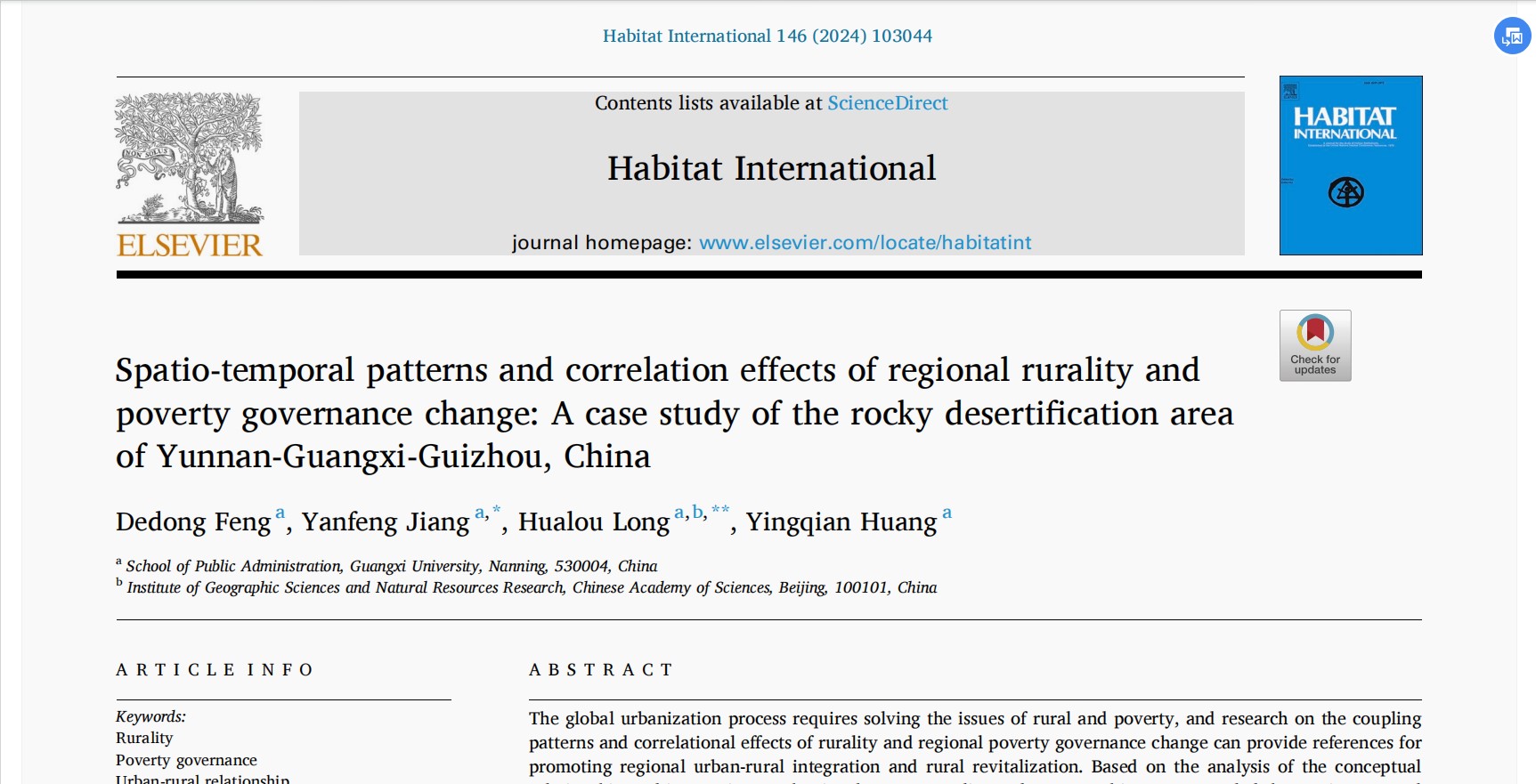 约啪社区 博士研究生冯德东在Habitat International发文探讨滇桂黔石漠化片区乡村性与贫困治理变化