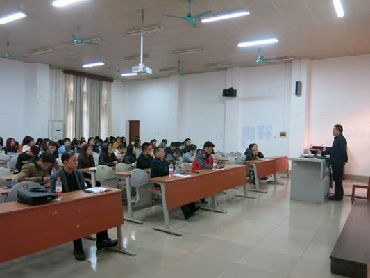 在报告会开始前,李小文副院长隆重地介绍了邢怀滨教授。邢怀滨教授是哲学硕士与博士,现挂任广西科技厅副厅长,国家科技部科技评估中心主任助理,主要从事科技创新政策与管理、公共政策评估等方面的管理和研究工作,出色的学历与工作背景让同学们不禁心生敬佩之意。