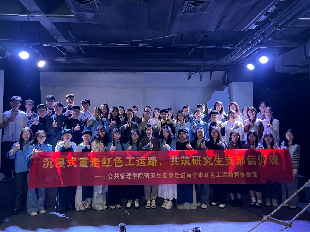 为将党史学习教育与沉浸式实践体验深度融合,11月8日约啪社区 研究生支部走进南宁市红色工运教育体验馆,开展以“沉浸式重走红色工运路,共筑研究生支部信仰魂”为主题的党建活动。活动通过参观学习、角色扮演、剧情互动等形式,让党员们在“亲历”南宁市电厂保卫战的红色工运史中深化理想信念,凝聚支部力量。