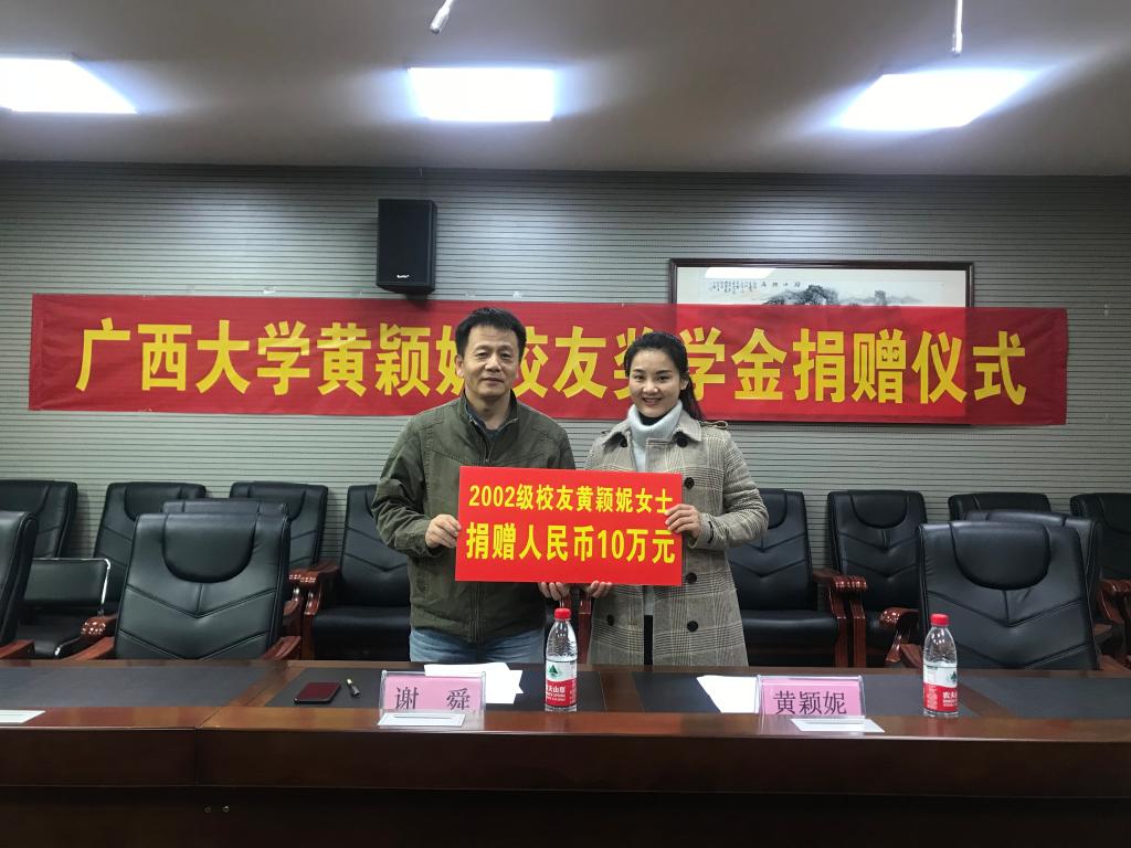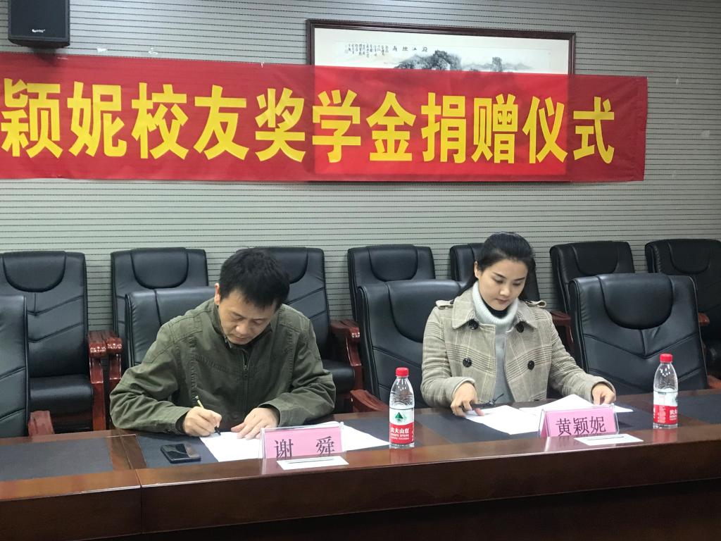 在捐赠仪式上,黄颖妮校友与谢舜书记签署奖学金捐赠协议,向学校教育发展基金会捐赠奖学金人民币10万元,用于在约啪社区 设立“黄颖妮校友奖学金”,奖励保研和考研到本院继续攻读硕士研究生的优秀学生。