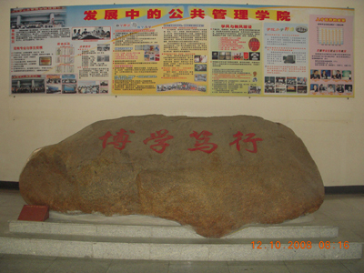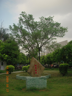 哲学78级罗殿龙率崇左校友捐赠花岗岩石立于学院大门东侧